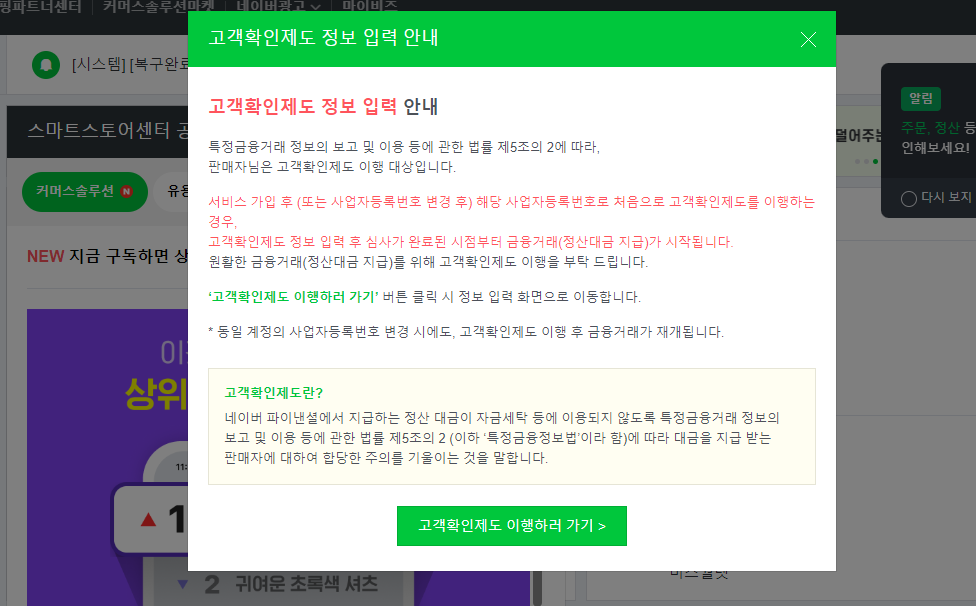 사업자 네이버 ID로 로그인하시면, 위 팝업이 뜹니다. (문자로 온 링크 타고 들어가세요)