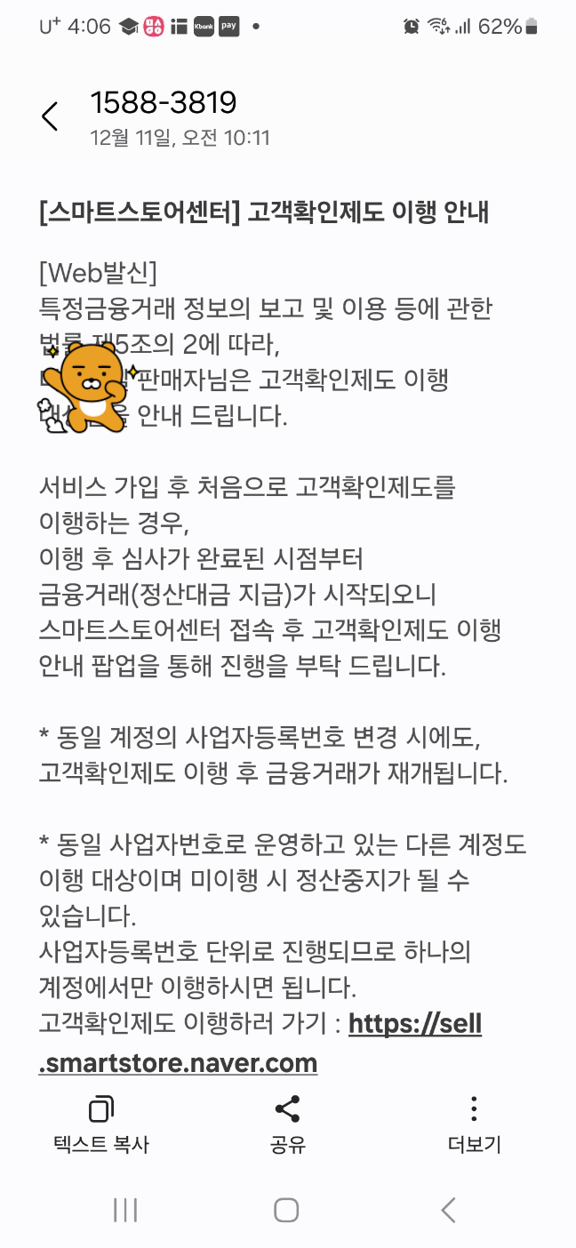 하여간 기분 좋게~ 문자를 보는데, 고객확인제도가 있다네요.