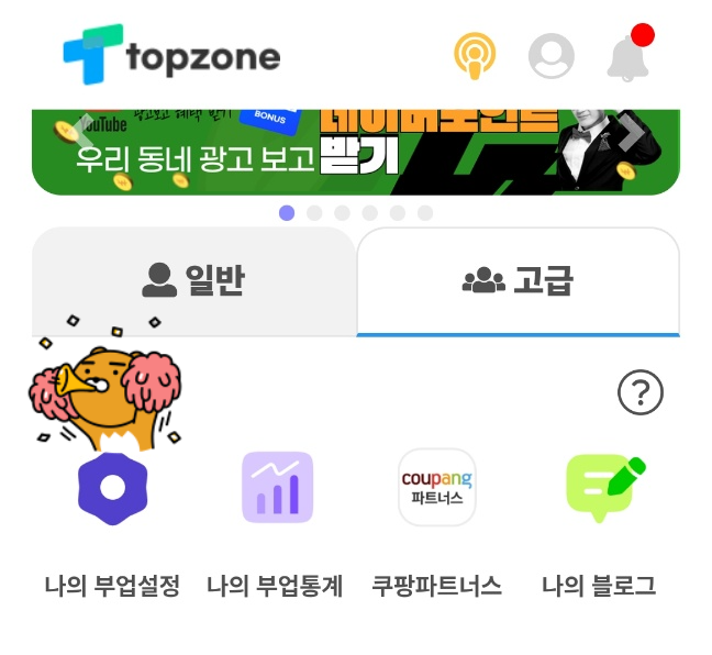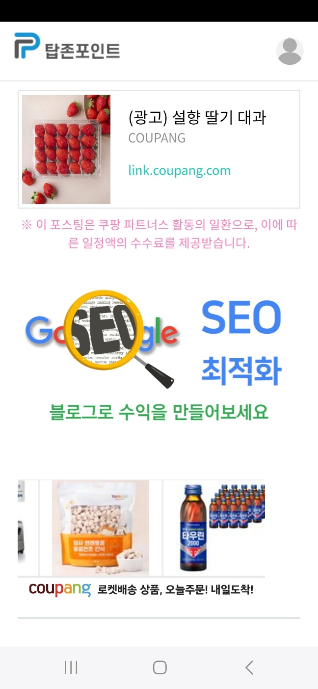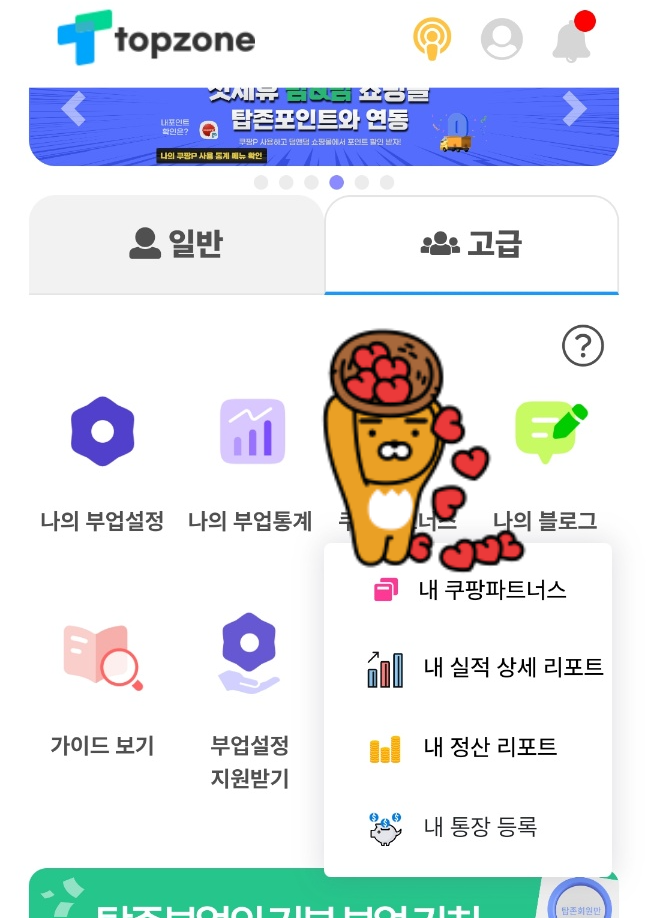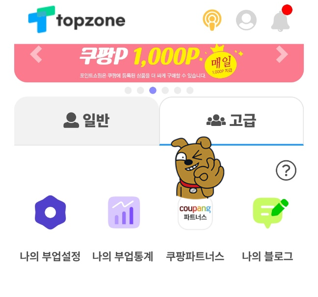 탑존을 열면 첫 화면에서~ 저렇게 쿠팡파트너스가 있답니다.