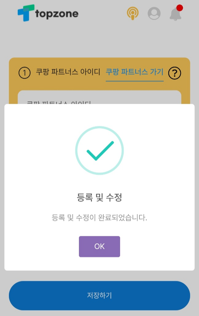 이로써, 쿠팡파트너스의 아이디와 URL을 탑존에 연동시켰어요!