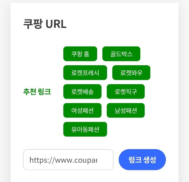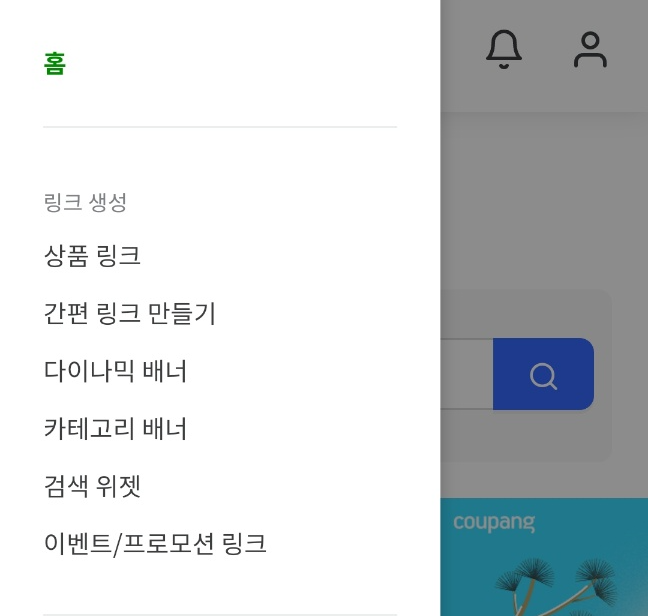 쿠팡홈을 누르고 링크 생성 누릅니다.