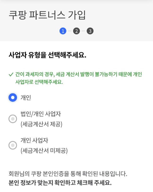 전 소소하게 하니까 "개인" 선택합니다.ㅋ