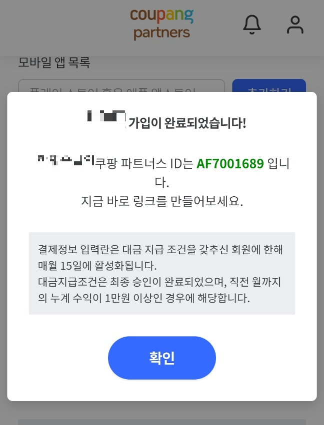 이젠 쿠팡파트너스에 승인을 받아야 합니다.