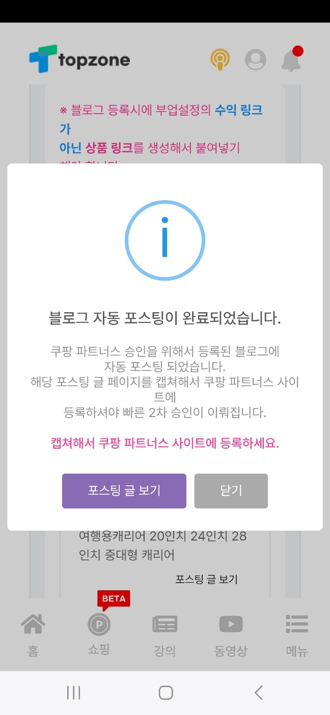 여기까지는 쿠팡파트너스로 들어가서 상품코드 복사한후, 탑존 블로그에 자동 포스팅한거죠?