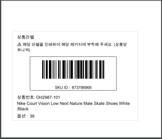 이런 라벨을 출력해서 넣으라는 말이 나와요.