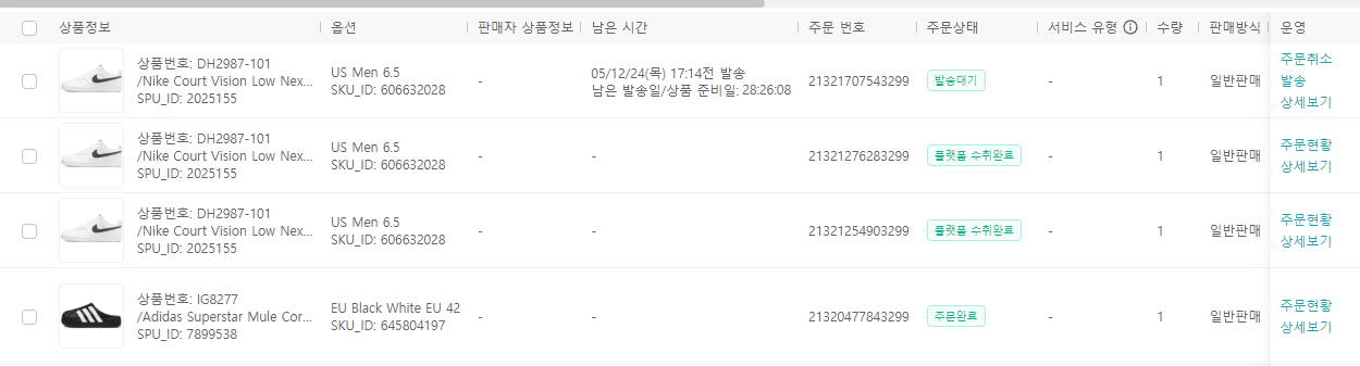 11/28일 신발 1개가 판매 되었다고 포스팅 했었습니다.