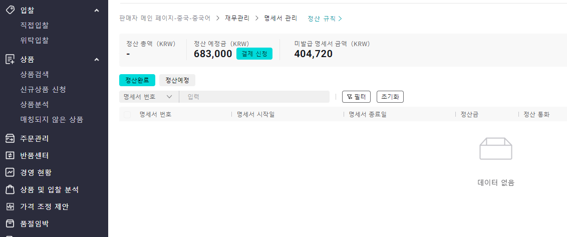 사업자 입점을 하면 100만 원이 넘어야 정산을 신청할 수 있습니다.
