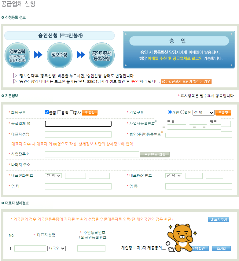 공급업체 등록 신청이 완료되면 구경하고 일 하시면 됩니다.
